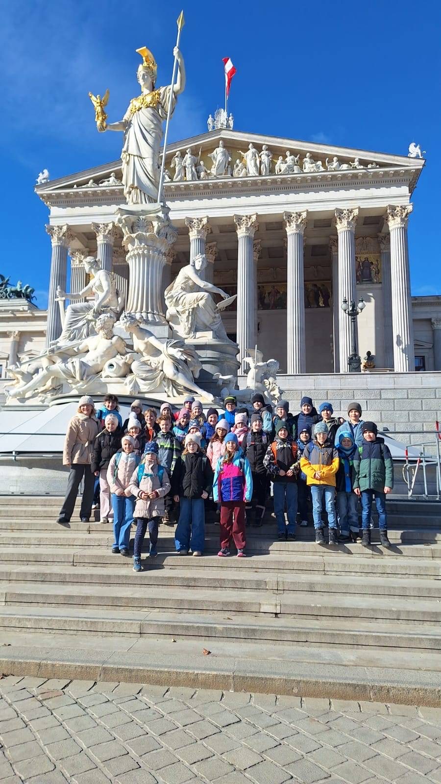 Einen besonders aufregenden Tag verbrachten die Kinder der 4. Klassen am Freitag vor den Semesterferien in Wien. Gemeinsam mit ihrer Direktorin Birgit Trauner sowie Simone Grochar, Ursula Holl und Michaela Aichinger ging es mit dem Bus in die Bundeshauptstadt. Nach einem kurzen Rundgang stand eine Kinderführung im Parlament auf dem Programm. Der Höhepunkt folgte am Nachmittag: In der Wiener Staatsoper durften die Kinder „Die Zauberflöte für Kinder“ erleben. Die Wiener Philharmoniker präsentierten eine kindgerechte Fassung der Oper von Wolfgang Amadeus Mozart. Besonders beeindruckend war, dass das gesamte Parkett als Sitzfläche genutzt werden konnte. Begeistert und voller Eindrücke traten wir um 16.30 Uhr die Heimreise an – ein wunderbarer Start in die wohlverdienten Ferien. Ein herzliches Dankeschön gilt unseren engagierten Müttern für die großartige Unterstützung!