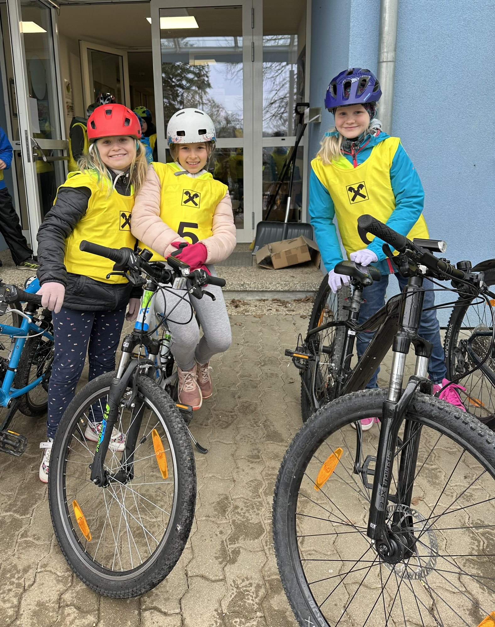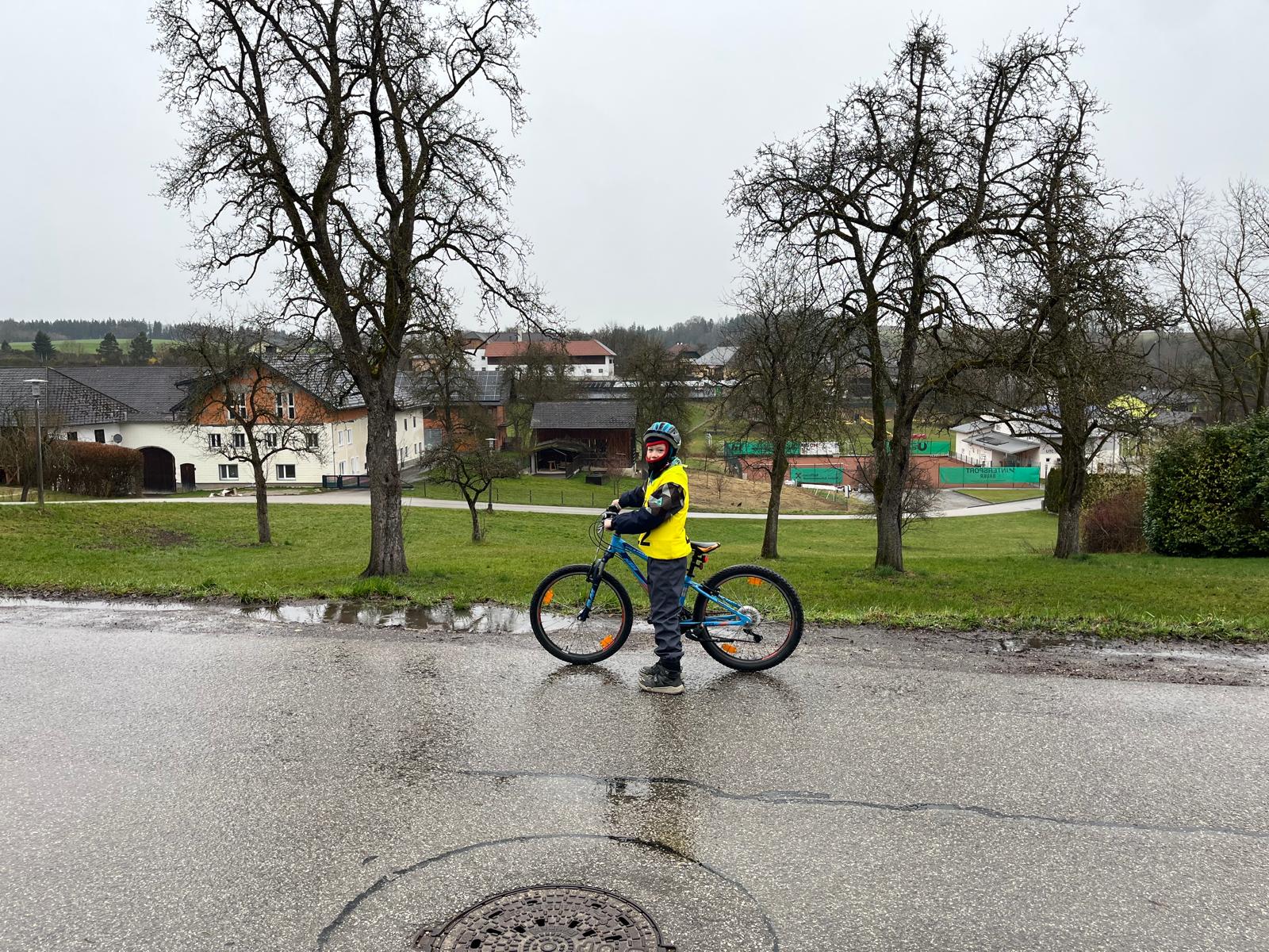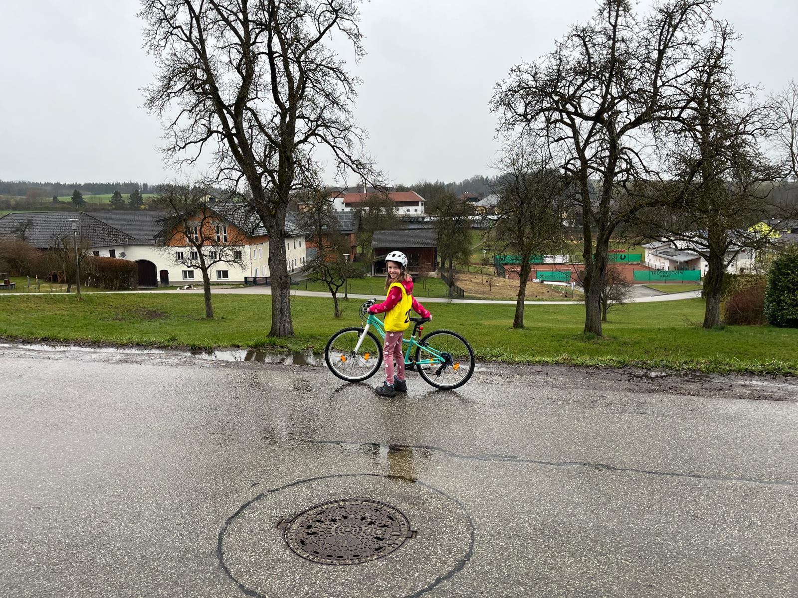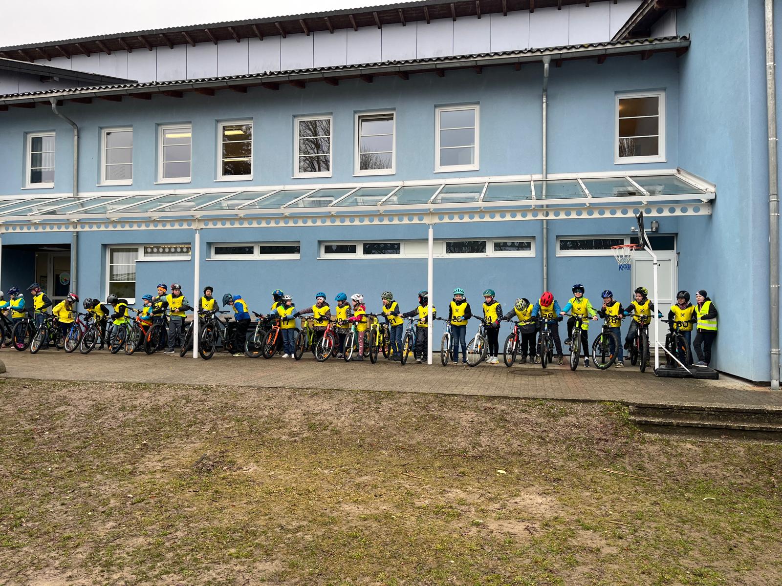 Heute fand die Radfahrprüfung der 4. Klassen statt. Leider zeigte sich das Wetter von seiner ungemütlichen Seite – Kälte und Nässe machten die Bedingungen für die Kinder besonders herausfordernd.