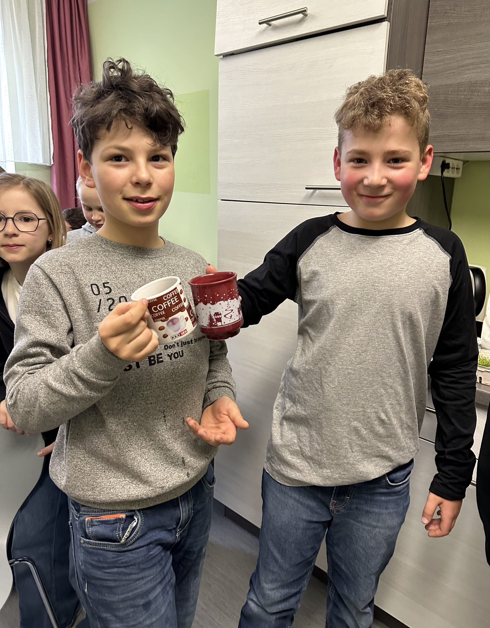 Eine besondere Stärkung gab es danach: Frau Grochar versorgte die Kinder mit heißem Tee, sodass sie sich nach der Kälte wieder aufwärmen konnten. Ein herzliches Dankeschön für diese wertvolle Unterstützung!